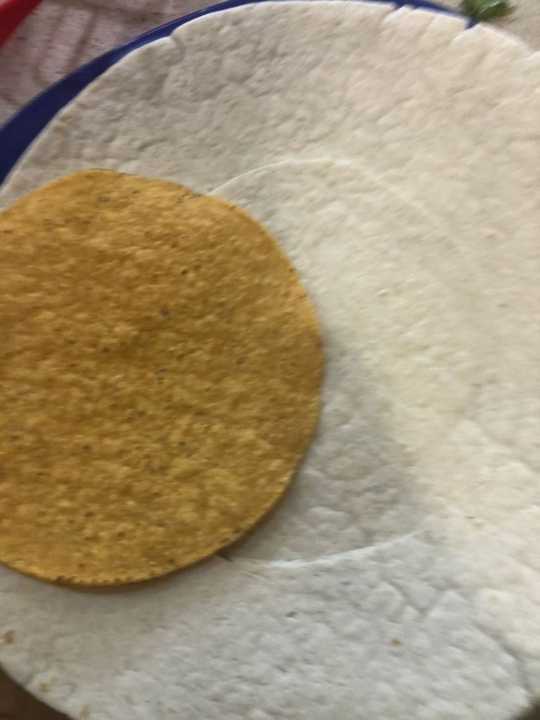 To prepare the shells – Take the flour tortilla and place it on a plate. Place a tostada shell in the center and cut out with a Paring Knife. Set the Circle aside to use when assembling the Crunch Wrap