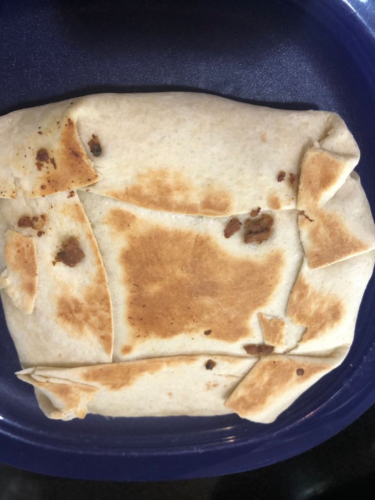 Cover the whole thing with the tortilla you cut out. Fold the edges and flip upside down into the Micro Pro Grill. Microwave for 3-4 minutes on high in the Grill Position. Then Flip and cook for 2 more minutes. Serve with your favorite Hot Sauce if desired!